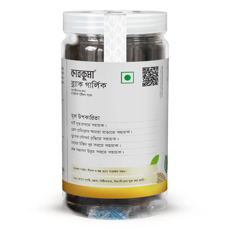 Karkuma Black Garlic is simply fresh garlic (Allium sativum L.) that has been fermented for a period of time at a controlled temperature and humidity. The process turns garlic cloves dark, gives them a sweet taste, and alters their consistency to chewy and jelly-like. During this process garlic becomes rich in antioxidants, amino acids, and bioactive compounds such as S-allyl cysteine. It offers a wide range of health benefits, such as supporting heart health, boosting immunity, reducing inflammation, and improving overall well-being.